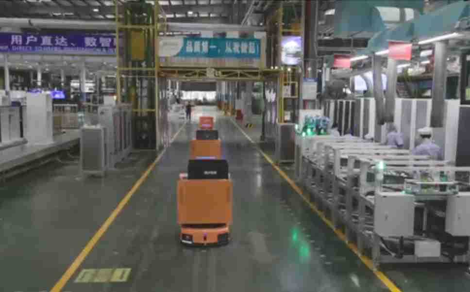 为车载冰箱物流配送打造的智能解决方案,,,包含产中物流通过潜伏举升AMR搬运至线边,,,产后成品物流智能仓储,,流程包含产中物流智能齐套入库,,线边安灯叫料AMR智能配送至线边,,,成品入库、、、、出库,,,通过无人堆高车机器人,,,智能仓储管理替代人工作业管理,,,,实现更高存储、、、、更高效率、、更具柔性化的解决方案。。